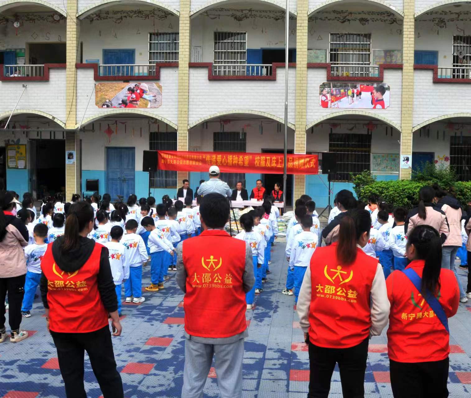 操场上,孩子们穿着崭新的衣服整齐列队,跳起欢快的舞蹈,用自己的方式向爱心人士和志愿者表达了他们的喜悦之情。