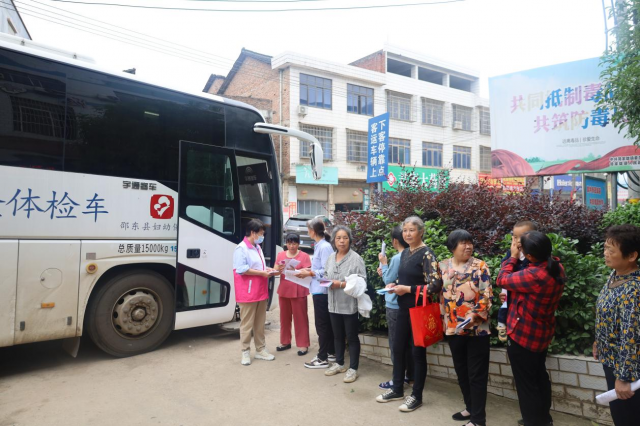 检查现场,前来参加“两癌”免费检查的女性在“两癌”筛查流动体检车前有序排队,认真填写参检对象“两癌”个案登记表。巾帼志愿者们分工明确,做好各项登记和统计工作,并为前来排队的妇女们详细讲解了相关健康知识,耐心解答她们各种疑问。