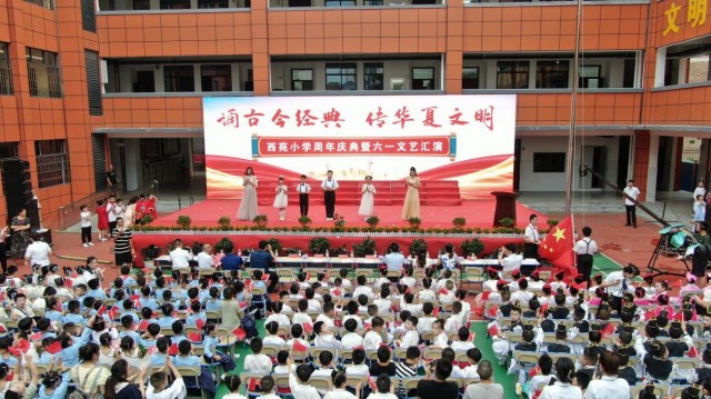 5月30日下午,大祥区西苑小学举行“诵古今经典 传华夏文明”周年庆典暨六一文艺汇演。