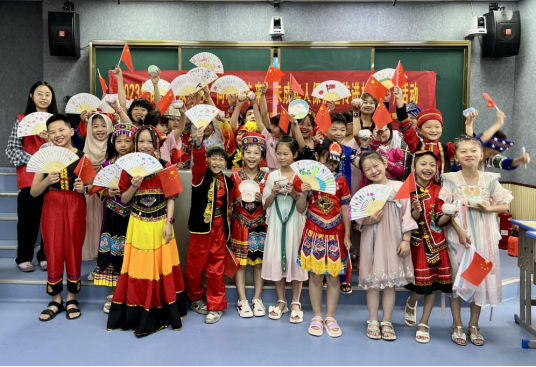 “五十六个民族,五十六枝花,五十六个兄弟姐妹是一家”,活动在欢快的《爱我中华》歌声中开始,社工老师带领孩子们一边唱一边手拉手跳起了欢快的舞曲,瞬间燃起了孩子们民族团结一家亲的感情。接下来才艺表演环节给孩子们一个很好的展示自我的机会,侗族和彝族的小朋友表演了各自民族的舞蹈,孩子们精湛的表演赢得了现场人员一阵阵热烈的掌声和欢呼声。活动中,少数民族的小朋友给大家科普了各自的民族习俗,社工老师还在中间穿插了儿童防性侵、防溺水等安全知识,助力孩子们健康安全成长。