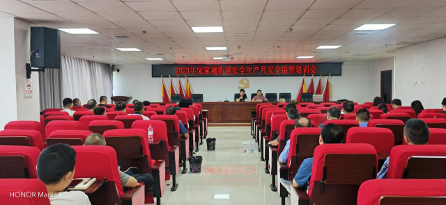 6月13日上午,邵东市宋家塘街道以“人人讲安全、个个会应急”为主题组织街道各安委会成员单位、辖区内重点监管企业安全负责人开展2023年宋家塘街道安全生产月安全监管培训会。