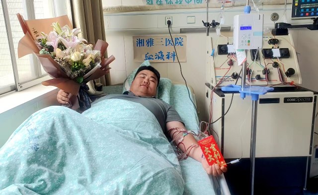 随后,张洲积极配合省市红十字会工作人员做好捐献前的各项准备工作。从7月10日开始,在经过为期四天的动员剂注射后成功完成捐献。捐献当日,经过近5小时的采集,张洲成功捐献了272毫升的造血干细胞悬浮液,为一名血液病患者及其家庭带去生的希望。