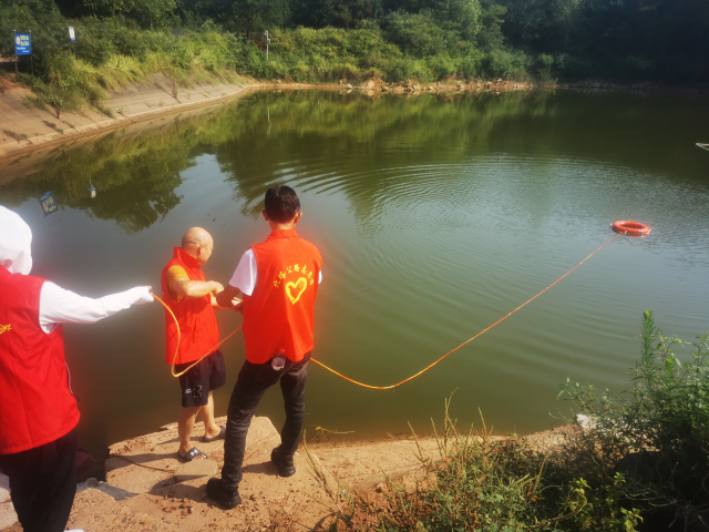 应急演练模拟柑子塘社区某山间水库有人到嬉水游泳,志愿者上前劝阻,部分戏水人员经劝阻后自行离开。但仍有一名群众并未离开,经现场志愿者劝阻后依然执意下水游泳,此时志愿者立即联系联点单位北塔区公路局工作人员到现场规劝,北塔区公路局收到讯息后第一时间赶到现场时,发现游泳群众溺水,立即投入紧张有序的应急救援。