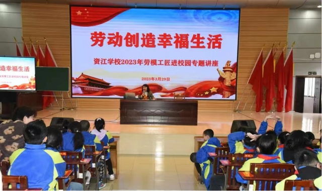 社会上各行各业专业人员定期走进课堂,让孩子不断拓宽视野,领略不同职业生活的多姿多彩。请法制副校长、全国五一劳动奖章获得者、国庆阅兵式阅兵队员、消防官兵等来校进行专业演讲。