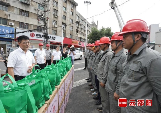 在双清区双坡南路附近,国网邵阳供电公司的十余名电力工人正在进行带电作业。于金旺将装有藿香正气液、风油精、板蓝根颗粒、人丹等防暑物资的慰问包一一送到户外作业电力职工手中,叮嘱大家要注意防暑降温、劳逸结合,既要确保电网安全稳定运行,又要做好自身安全健康劳动保护工作。在邵阳楚怡中职学校改扩建项目建设现场,户外施工人员冒着高温酷暑认真细致地完成着各项施工作业。于金旺详细了解该项目建设进度、防暑降温措施及安全、质量、文明施工等情况,为一线职工送上了防暑降温用品,并殷殷嘱咐大家要注意安全,避开高温时段错时施工作业,以防中暑;施工单位要注意管理好现场,在确保安全和质量的前提下按时序进度顺利推进项目建设。