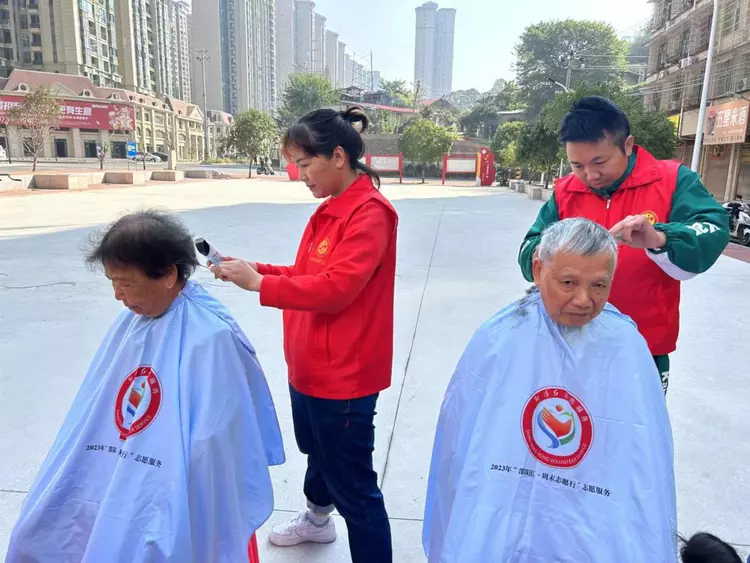 当天活动现场,邵阳市文联开展“墨香”飘社区活动,邀请书法家周城昊老师现场挥毫泼墨进行书法展示,让居民欣赏书法之美;北塔区税务局开展“烹燃”心动厨艺大比拼活动,邀请社区8名居民参与厨艺大比拼,参赛选手在家中炒好菜,然后志愿者、社区干部和居民组成大众评委,通过品尝8个菜进行给星评分,根据星星的数量决出前三名,最终社区伍女士票数最高,获得第一名;同时,北塔税务局还开展了税惠万家“暖人心”活动,向居民详细讲解税惠政策。北塔区榕树家一笑康中医诊所安排志愿者开展“爱心义诊护健康”活动,提供量血压、测血糖、把脉、艾灸、痛症处理等志愿服务,为居民健康保驾护航。邵阳和谐社会工作服务中心开展“为爱撑伞”活动,邀请居民和孩子进行透明雨伞DIY亲子绘画,促进亲子关系的融洽;组织志愿者开展“义起行动 剪出精彩”,免费给居民提供理发服务。