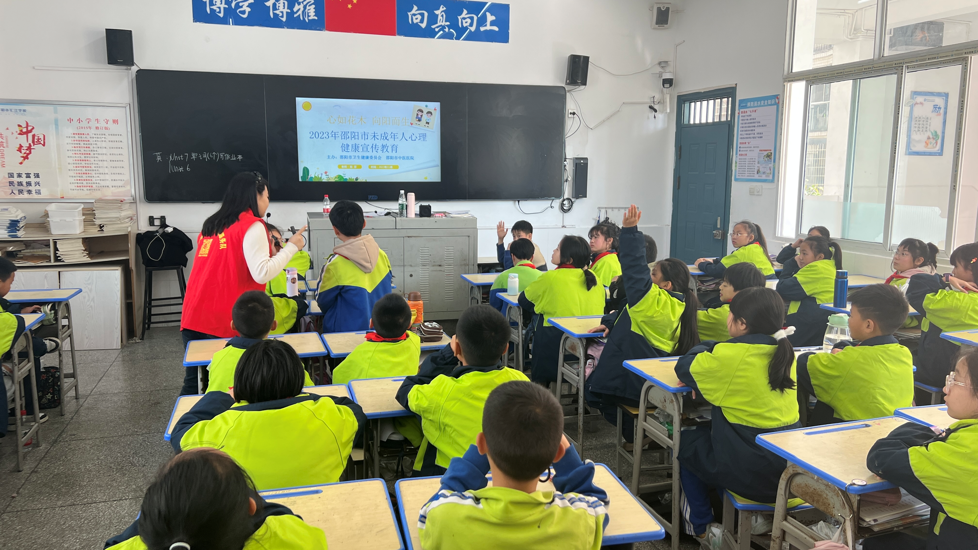 为促进未成年人的心理健康,帮助孩子们认识生命、珍惜生命、敬畏生命、提高生存技能、提升生命质量,2023年11月17日下午,邵阳市中医医院团委书记、高级心理咨询师刘芬老师,来到邵阳市汇江小学为同学开展以“心如花木向阳而生”为主题的心理健康教育讲座活动。