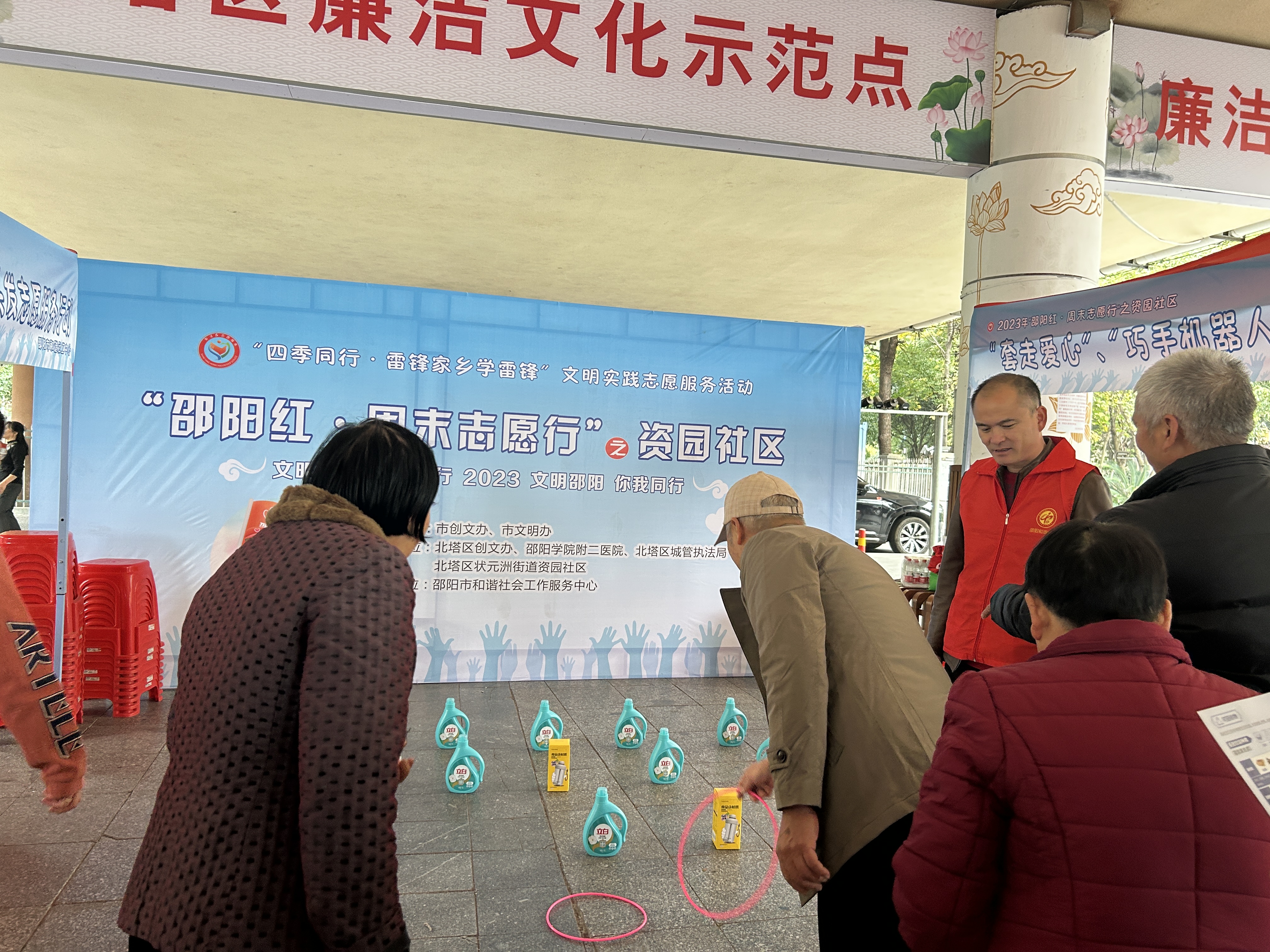 邵阳文明网11月29日讯 11月25日,“邵阳红·周末志愿行”志愿服务走进北塔区状元洲街道资园社区,用丰富多彩的志愿服务活动,打造群众家门口的便民集市。