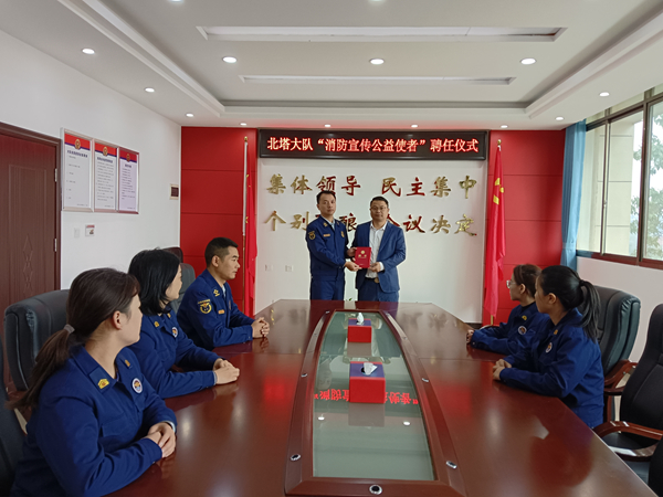 为扩大消防宣传的深度和广度,积极推动“119消防宣传月”工作,进一步提高公众的火灾预防和应急处置能力,11月29日,北塔区消防救援大队举行消防公益使者签约仪式,正式聘任北塔区知名志愿者蔡坚为“北塔区消防救援大队消防宣传公益使者”。