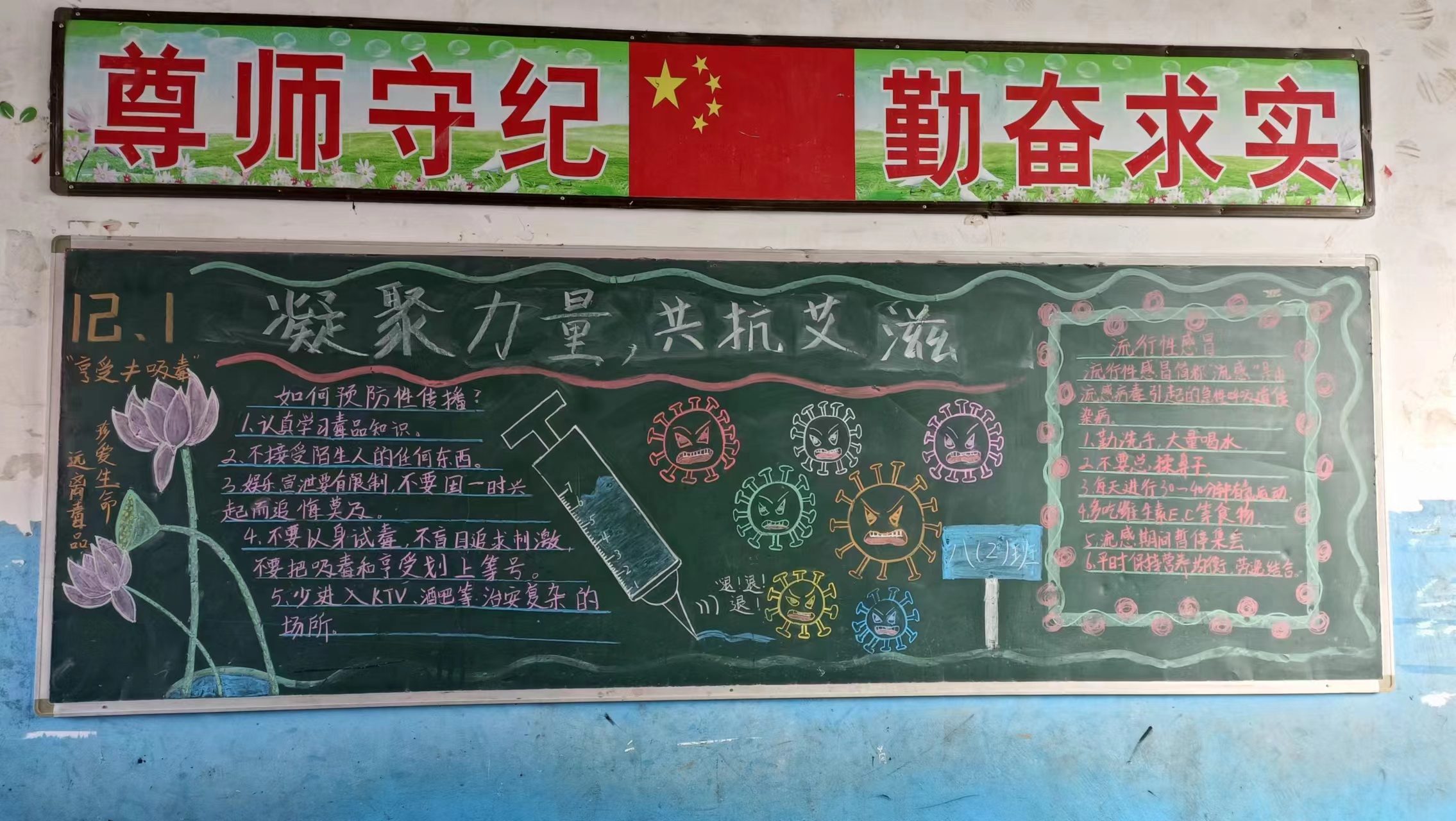 2023年12月1日是第36个“世界艾滋病日”。为了增强学生预防艾滋病的意识,树立学生社会责任意识和正确的性道德观,不再“谈艾色变”,培养文明健康的生活方式,促进其健康发展。我校组织了以“共抗艾滋,共享健康”为主题的黑板报评比活动。