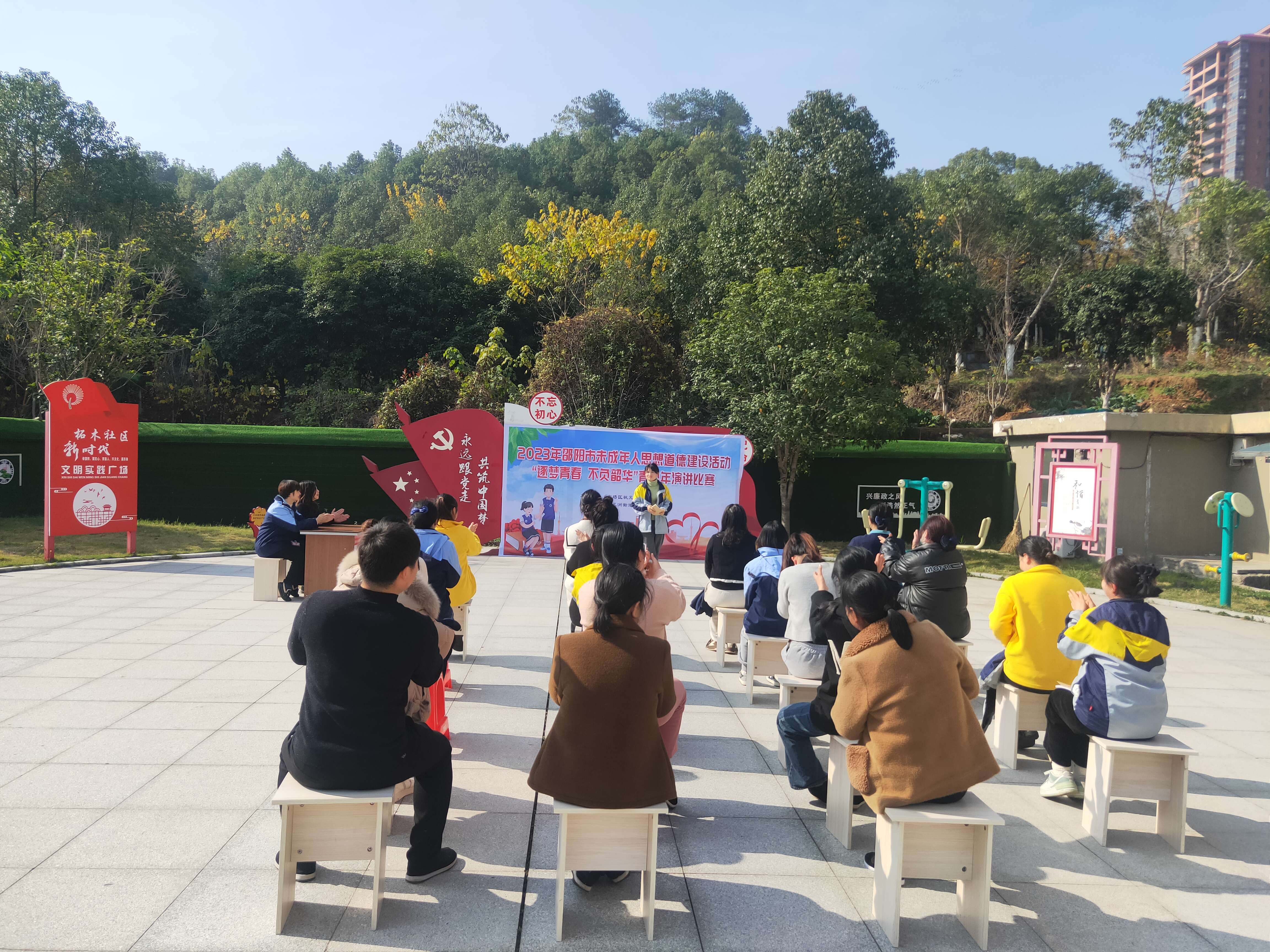 12月14日,北塔区状元洲街道柘木社区组织开展未成年人思想道德建设活动—“逐梦青春 不负韶华”青少年演讲比赛。活动在社区新时代文明实践广场开展,参赛选手、评委、社区居民等共20余人参加。