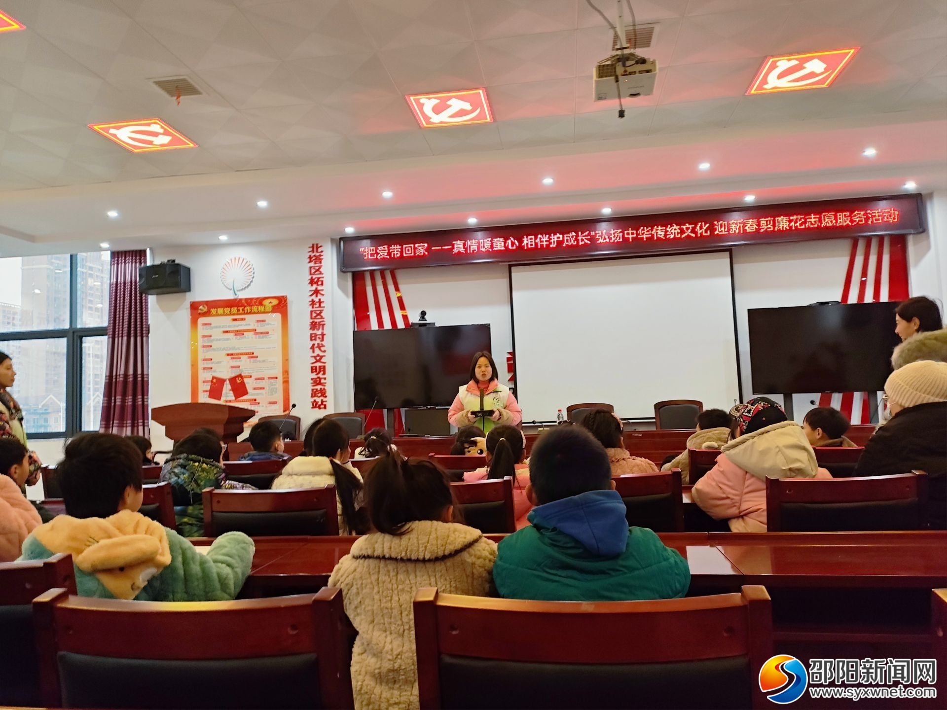 1月29日,北塔区状元洲街道柘木社区在新时代文明实践所组织开展以“把爱带回家—真情暖童心 相伴护成长”为主题的剪纸志愿服务活动。社区20余名小朋友参加活动。