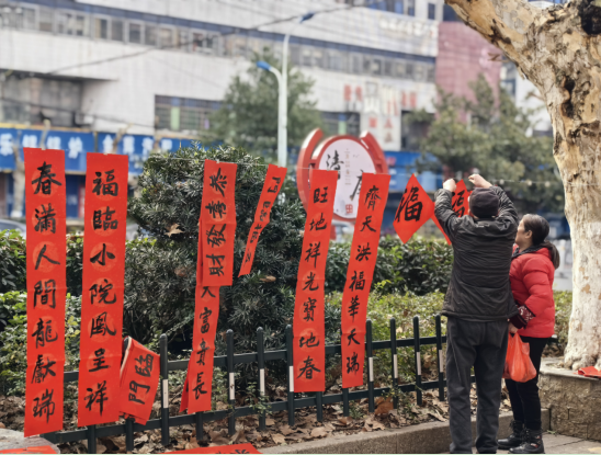 活动结束后,志愿者和“三长”代表带着春联来到辖区高龄、独居老人家中,为他们送上新春的祝福和慰问,也让老人们提前感受情意暖暖的新年。“春节到来之际,收到这副对联我很开心,现在社区的活动办得越来越好了!”领取春联后,百寿亭社区居民为社区的工作点赞。