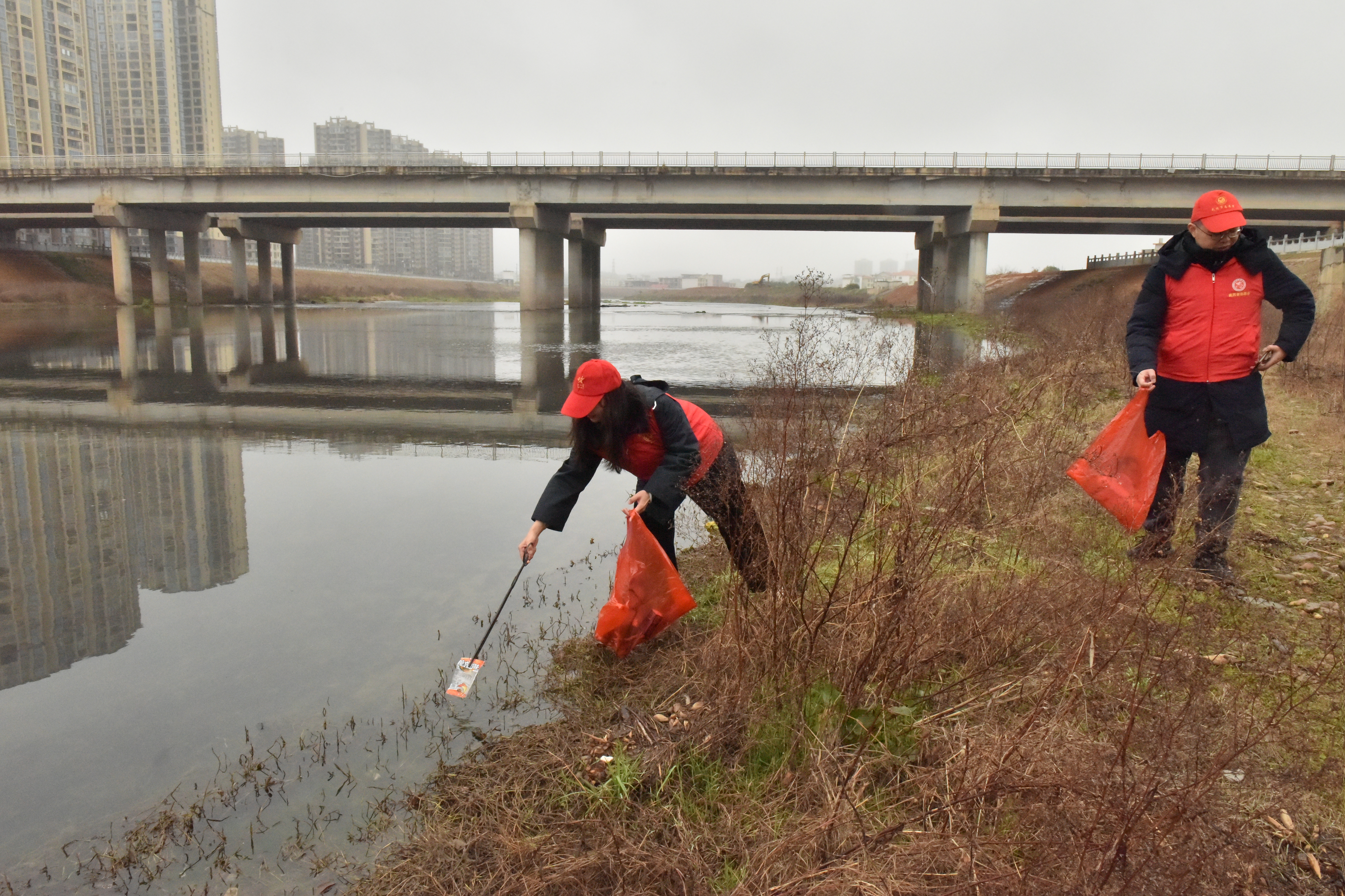 志愿者们身穿志愿服、头戴“红小帽”,手拿夹钳、垃圾袋等工具对河边绿化带、河畔荒草丛进行拉网式清理,小到烟头、纸屑,大到包装袋、易拉罐、废旧生活用品等垃圾都收入囊中。