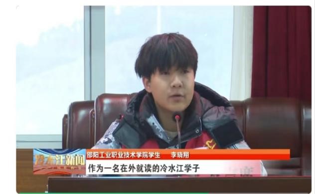 电子商务专业2311班李晓翔同学在家乡冷水江市参加“相遇青春情暖锑都”社会实践活动,被评为“优秀实践个人”。李晓翔同学作为优秀个人代表在表彰大会上发言,并接受冷水江市电视台采访,他采访中说道,“青年学子志在四方,作为一名在外就读的冷水江学子,我始终充满着未来为家乡、为祖国贡献总结青春力量的信心”。
