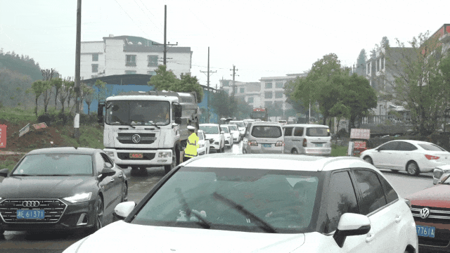 交警不断喊话提醒车辆避让