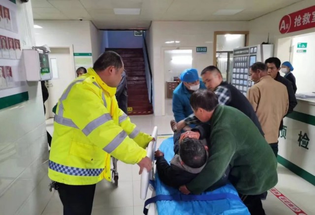 交警将伤者送入急救室后
