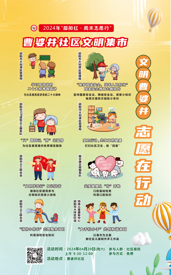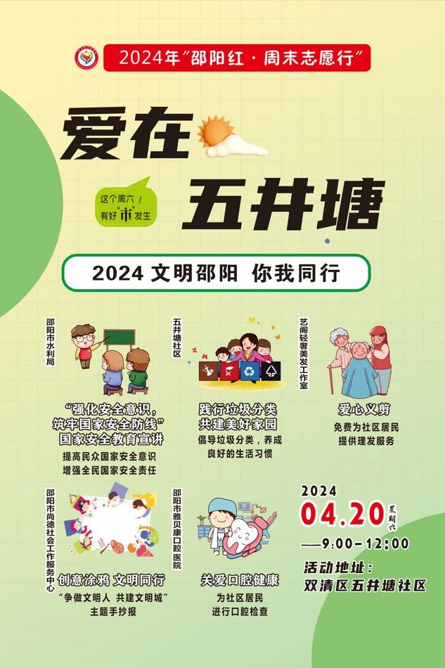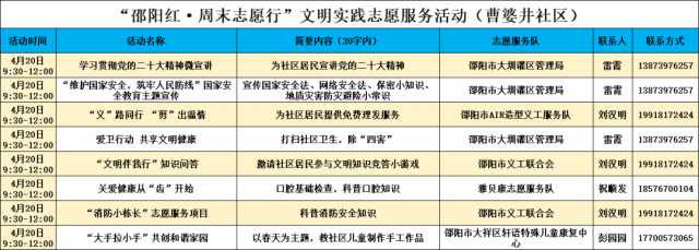 ……周末的选择多样如何更有意义?这个周末让我们一起加入“邵阳红·周末志愿行”关爱老人,陪伴儿童或参与环保让爱心流淌让温暖传递曹婆井社区