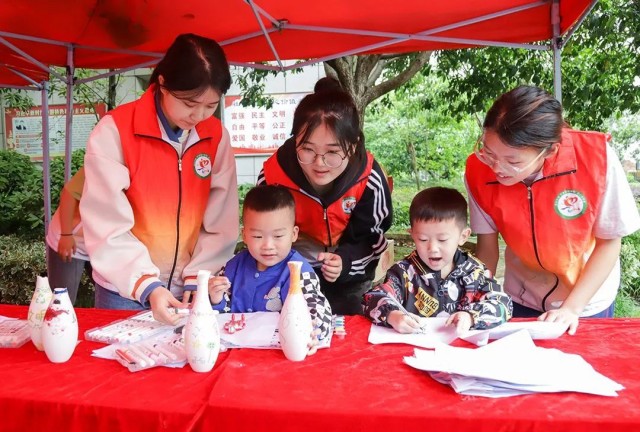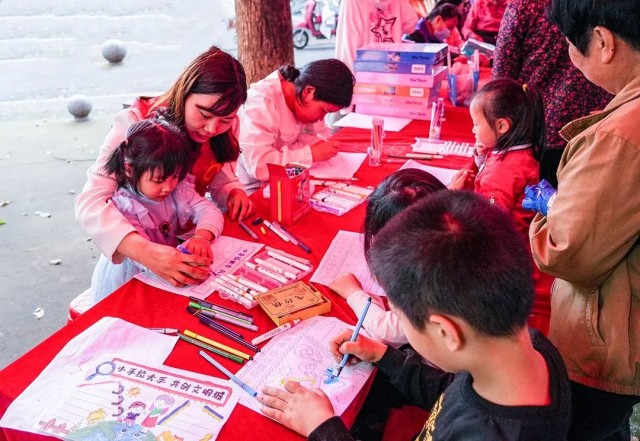 现场,志愿者还以春天为主题,教社区儿童舞蹈、制作手工作品。孩子们在志愿者的指导下,用彩纸、彩笔等材料制作出了心仪的作品,脸上洋溢着幸福的笑容。