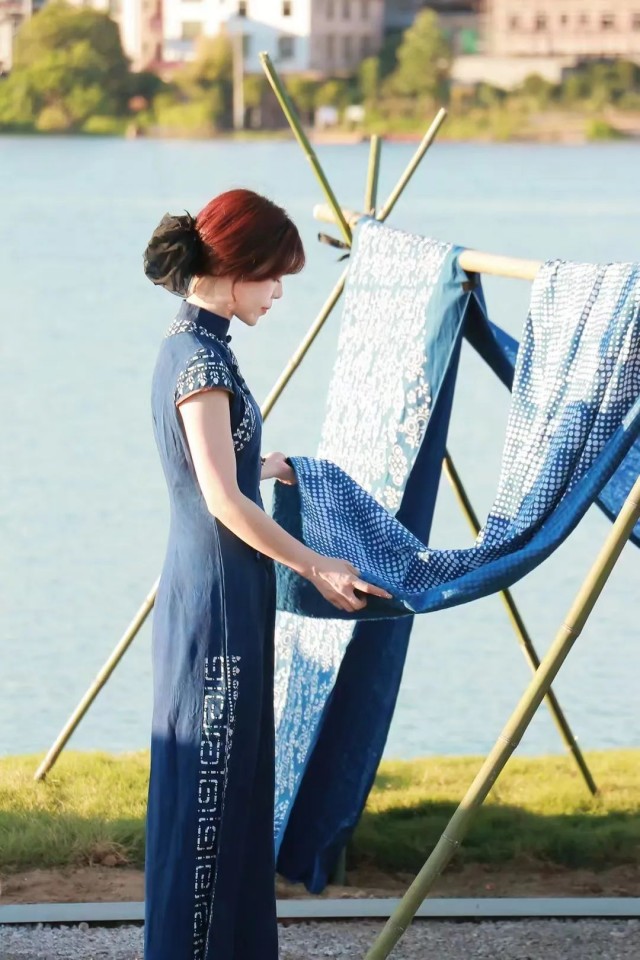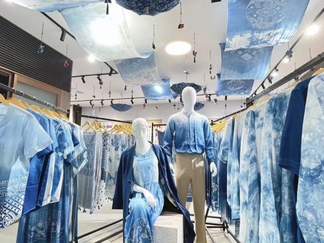 “我们以‘蓝色空间印象’为主题,提炼其飘逸柔美之感,以灵动的姿态展现出蓝印花布的历史更迭。”邵阳蓝印花布非遗技艺传承人罗沙沙表示,公司设计实现了非遗产品时间与空间的跨越,已经成为当地的靓丽名片。