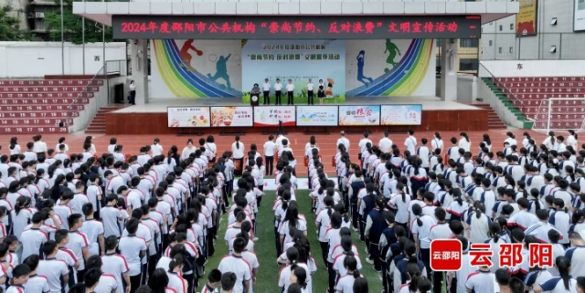 邵阳市第六中学的学生代表宣读了“崇尚节约、反对浪费”倡议书,号召各位同学自觉将勤俭节约落实到学习和生活中的每一个细节。从节约每一粒粮、节约每一滴水、节约每一度电、节约每一张纸做起,养成勤俭节约的好习惯,携手并肩为建设节约型、环保型的校园贡献自己的力量。