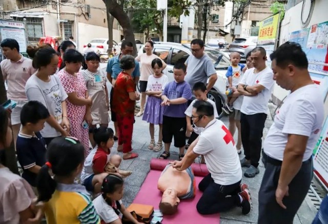 在金桥社区开展的红十字急救技能普及成为焦点。志愿者曾庆雄表示:“我们现场演示了海姆立克急救法,旨在让更多人掌握急救技能。”此外,傍晚时分,免费电影放映点亮社区,居民在欢笑中享受文化盛宴。