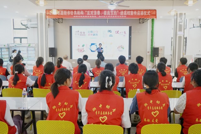 此次活动由邵阳市机关事务管理局、湘中幼儿师范高等专科学校共同举办,旨在进一步贯彻落实习近平总书记对制止餐饮浪费行为作出的重要指示精神,引导学生群众养成珍惜粮食、厉行节约、反对浪费的生活习惯。市机关事务管理局、湘中幼专相关负责人及青年志愿者服务团代表参加启动仪式。
