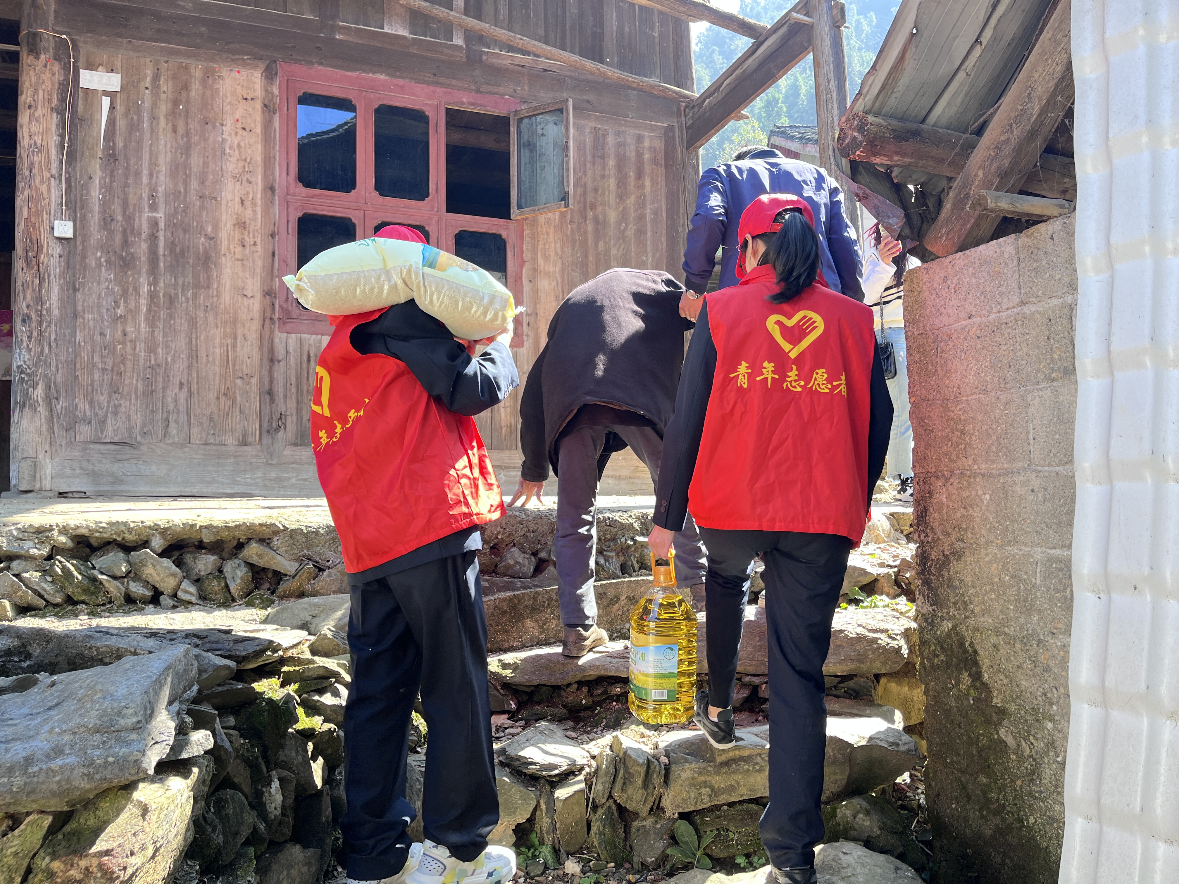 上午,爱心团队出发,带着满满的爱心物资和诚挚的问候,踏上了帮扶之路。爱心团队首先来到了城步苗族自治县桥头寨村刘爷爷的家中,刘爷爷两个儿子因病相继离世,只有一个孙子在外打工,独剩两位老人留守在家。刘爷爷自身也患有尿毒症,每个星期都要到医院进行透析治疗。爱心团队得知刘爷爷家的情况,为刘爷爷家送上了大米、食用油、衣服等生活必需品,并亲切地与两位老人交谈,了解老人的身体状况和生活情况。两位老人对爱心团队的帮助感动不已,握住大家的手,不停地说着感谢。