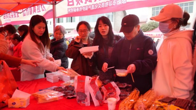 与此同时,苗儿村新时代文明实践站内热闹非凡,处处洋溢着活力。文明实践活动展示区,威风鼓《精忠报国》震撼人心,花鼓戏《刘海砍樵》、祁剧《断桥》等传统戏曲轮番上演。在文明实践项目服务区,群众尽情品尝猪血丸子等非遗美食,麦芽糖与龙须酥香甜酥脆,每一口都满载传统文化韵味。