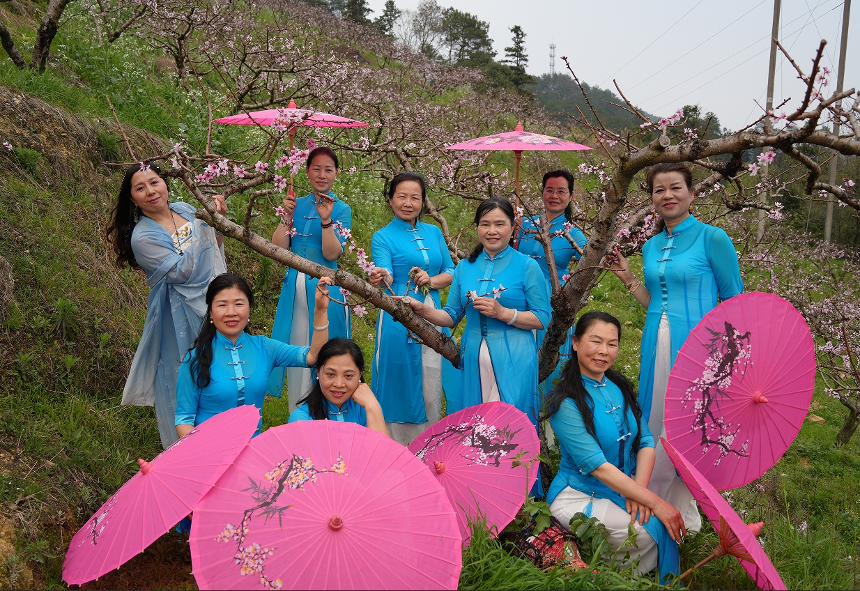 邵阳文明网3月31日讯(通讯员 宋三龙 唐芳艳 张先邵)近日,邵阳市绥宁县长铺子苗族侗族乡寨坡村满坡桃花竞相绽放,灿若云霞,美不胜收,一树树桃花形态优美,枝干扶疏、花朵丰腴、色彩艳丽。桃花一朵接着一朵,一树连着一树,那淡淡的粉,浅浅的红,缀满枝头,一簇簇,一串串,密密匝匝,在明媚的春光下,格外灿烂。绥宁县旗袍文化交流协会的姐妹们,趁着周末晴好天气,相约一起到这里看桃花,她们身着古风长裙,衣袂飘飘,穿梭在花海中,似仙女下凡,时而携手赏花、时而欢歌笑语、时而拍照留念,享受春天美好风光。