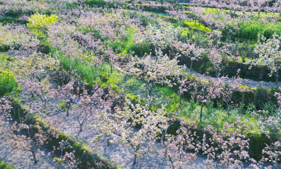 春季梨花飘香,秋季金梨遍野。梨花绽放不仅带来了美丽的风景,也充盈着丰收的“钱”景。待到金秋时节,苗香梨将挂满枝头,香飘四方。